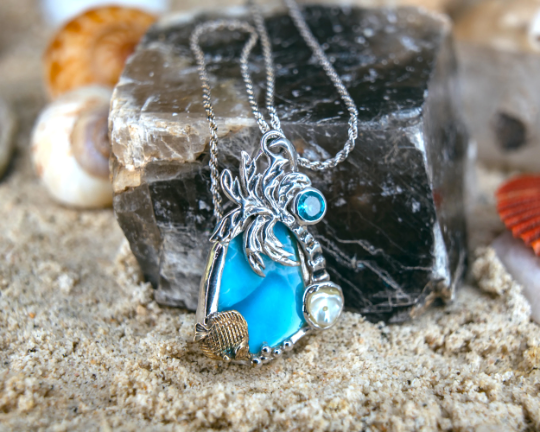 Mermaid Necklace- Sterling Silver Mermaid Necklace in Larimar with Blue Topaz